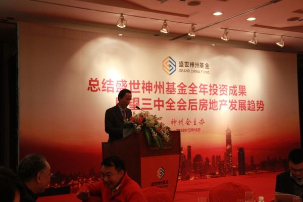 具有重大历史意义的十八届三中全会刚刚结束,奠定了市场在资源配置中起决定性作用的改革大方向。在这个锐意改革、辞旧迎新的大变革时刻,为答谢神州会会员的支持,分析下一年的投资趋势,2013年12月16日,盛世神州基金神州会在北京港澳中心瑞士酒店举行盛大活动。会员们欢聚一堂,盛世神州基金总结汇报了2013 年盛世神州基金投资成果,和与会嘉宾共同展望三中全会后房地产的发展趋势。